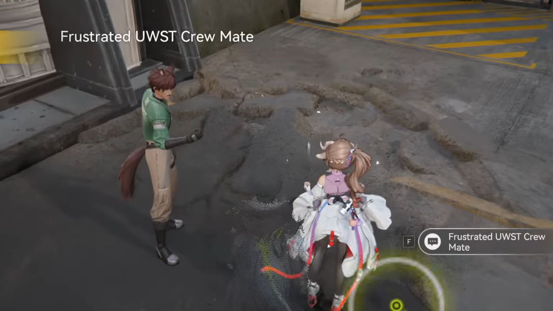 Head to the Originium Byproduct Processing Center with Jouster. You can walk there or simply teleport using the nearby TP Point. Once inside, speak with three UWST Crew Mates stationed in the area. They are positioned close together, so cycling through the conversations is quick.