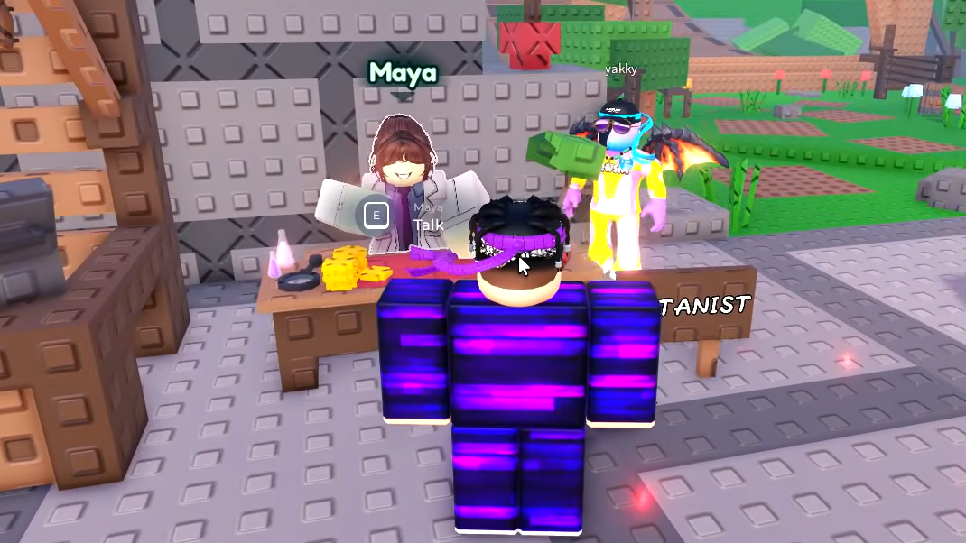 Garden Horizons' Update 1 introduced Maya, a botanist NPC who runs a 40-level quest chain centered on collecting and donating mutated fruits. She stands beside Molly's Gear Shop near the fountain in the center of the map, and her quests are the only free way to earn IGMA Seed Packs — a new type of seed pack containing five exclusive plants.