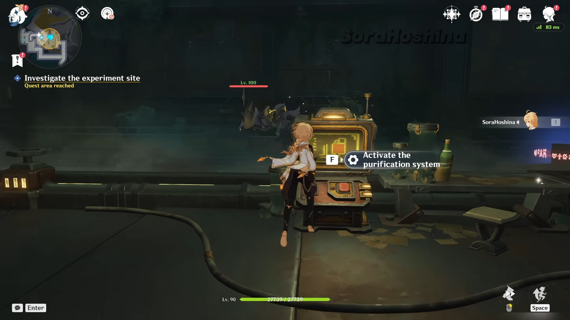 Step 2: Interact with the purification terminal in this room. The system reports it is blocked and needs manual activation, but using the terminal triggers the Purification System to annihilate the Rifthound and opens the door to your left.