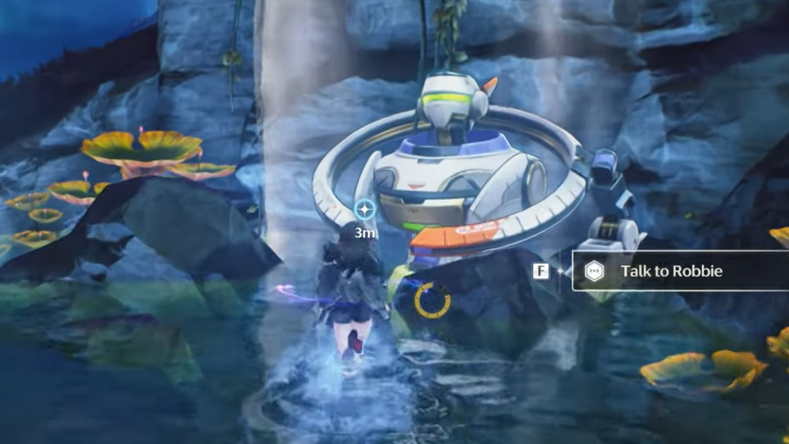 Step 2: Continue riding until you arrive at Robbie’s location. Interact with the Mechascout to begin its set of wishes and learn that it is heavily damaged.
