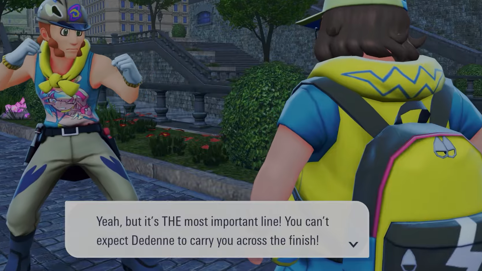 Step 2: Initiate dialogue with the grunts. Their lines reveal that they’re not actually fighting but practicing how to act as proper Rust Syndicate members, drilling each other on attitude and posture rather than trading insults. Calma realizes the misunderstanding, and Sylveon cannot “fix” what wasn’t broken.