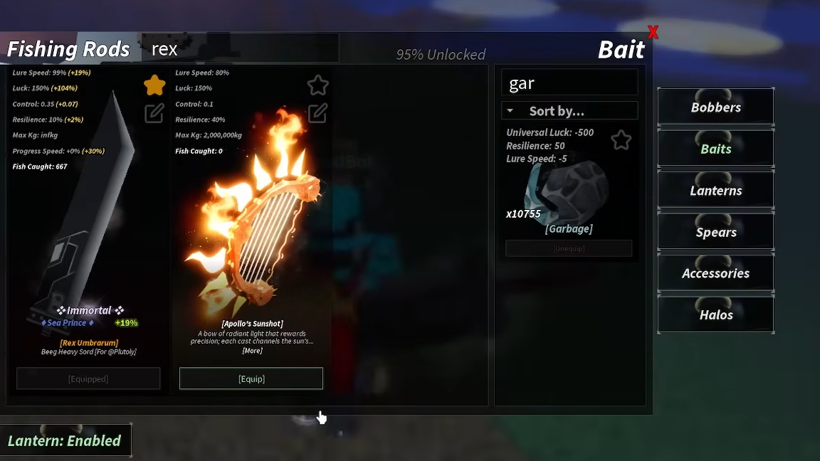 | Standard | Beamtail Koi, Auric Angelfish, and other non-event species | Catchable at any time inside Apollo's Song of Light |
