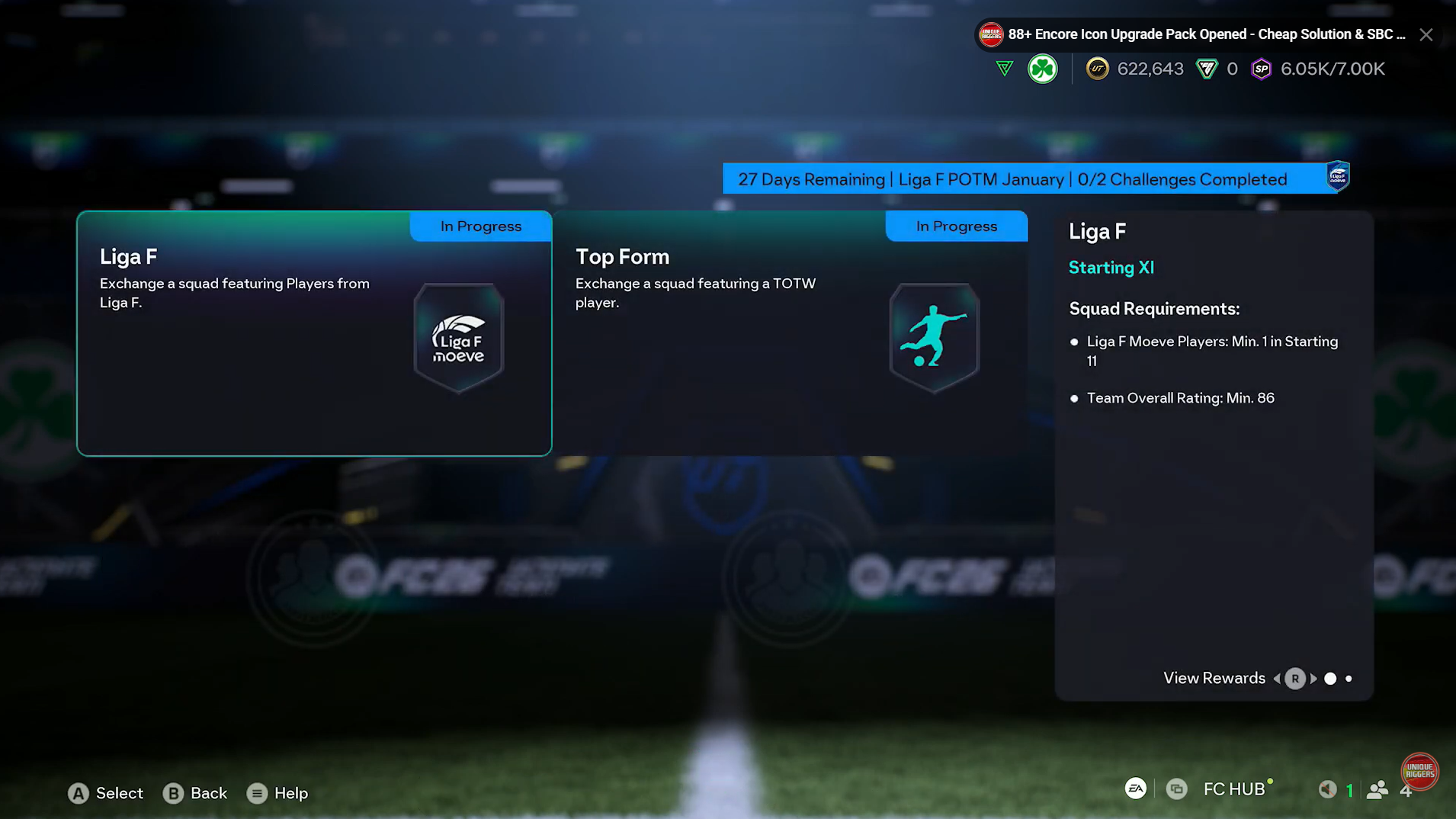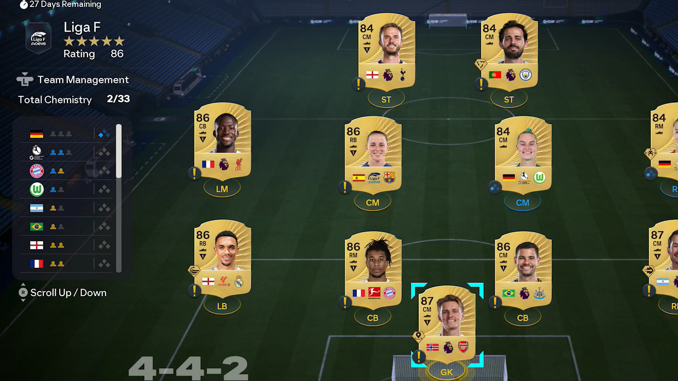 Step 1: Start by acquiring at least one player from Liga F Moeve. These cards are often inexpensive, so focus your budget on the higher-rated players needed to reach 86 overall.