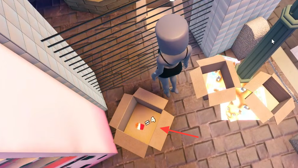| Toy store alleyway | Exit through the Runaway Exit and turn left into the small alley with the toy store. Check the bottom of the cardboard box next to the vending machine. |
