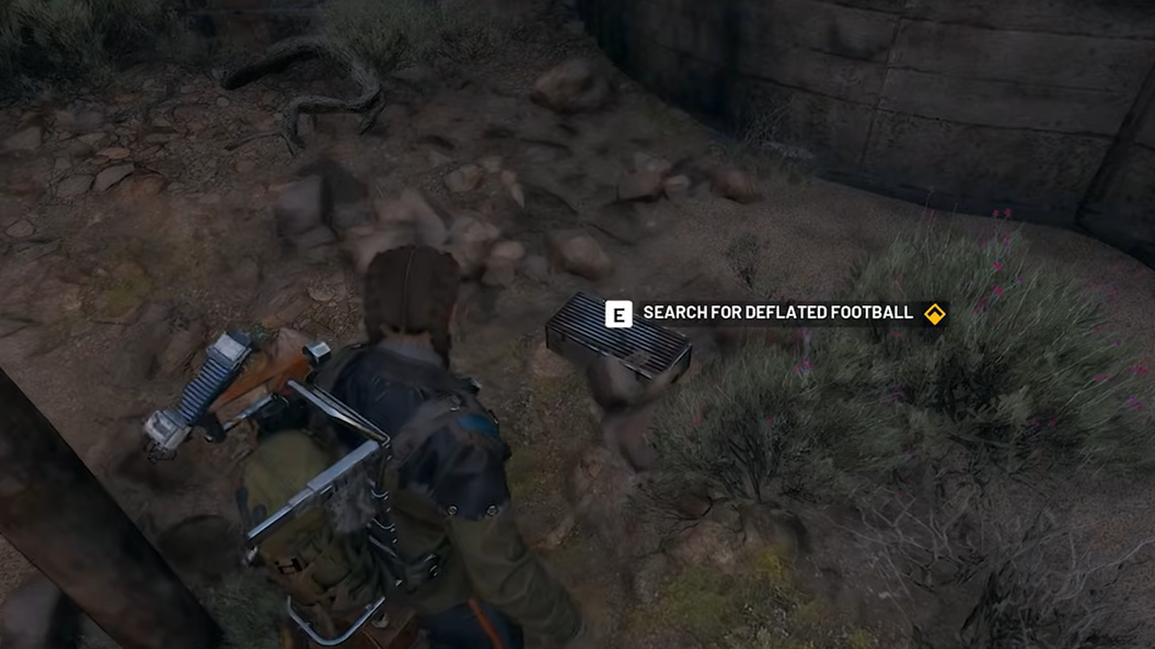 Step 3: Still in the same area, go behind the improvised football goal (the wooden goal frame near the football-painted dome). There is an interactable stash or container here that yields a guaranteed Deflated Football. Take the ball and extract safely.