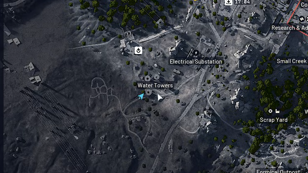 Step 1: Head to Dam Battlegrounds and move toward the Water Towers in the southern Formicai Hills region. The Water Towers are marked as a named location on the in-game map and are easy to recognise by the large domes.