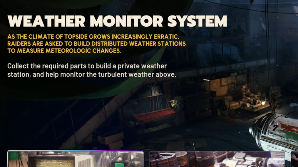 Open the Raiders page from your main menu and navigate to the Projects tile — it's the fourth icon. The Weather Monitor System sits in the bottom right of the Projects menu. You can submit items directly from your inventory or from materials collected on successful raids. Progress carries over through Expeditions, so you won't lose any completed stages after a reset.