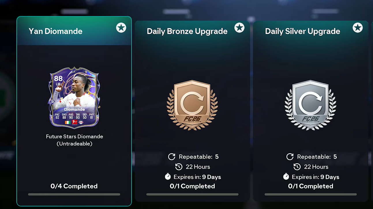 Yan Diomande's Future Stars card transforms the 19-year-old RB Leipzig winger into an 88-rated midfielder with elite pace and shooting attributes. The Squad Building Challenge requires four separate squad submissions and costs roughly 78,750 coins on console or 84,750 coins on PC. You have until February 9, 2026 to complete it.