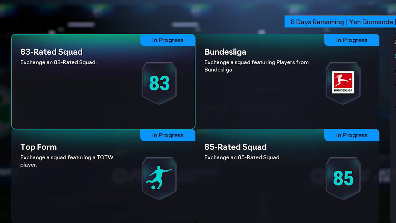 Four distinct challenges must be completed. Each requires submitting a full squad that meets specific criteria, and every challenge demands at least one Team of the Week player.