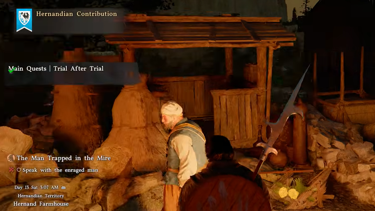 Trial After Trial is the 21st main quest in Crimson Desert, sitting inside the Chapter 2 sub-chapter "Hernand in Chaos." A farmer named Bremer has lost his cattle to bandits, and you need to track them down using a game mechanic that trips up a lot of players: reading a Memory Fragment with your lantern and the Visione helmet. Although the Visione was handed to you during the earlier Unexpected Gift quest, Trial After Trial is the first time you actually have to use it — and the game doesn't explain the process particularly well.