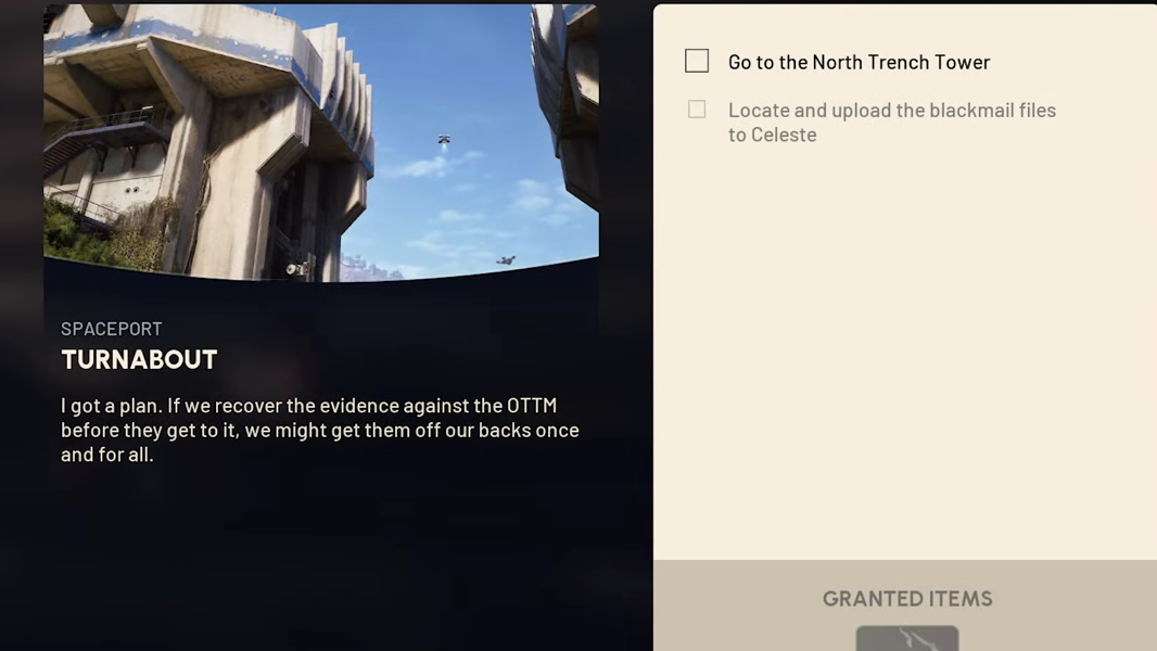 Turnabout in ARC Raiders is a Celeste quest that sends you to Spaceport's North Trench Tower to upload blackmail files against OTTM. It becomes available after completing the Digging Up Dirt quest and rewards weapon parts for your trouble.