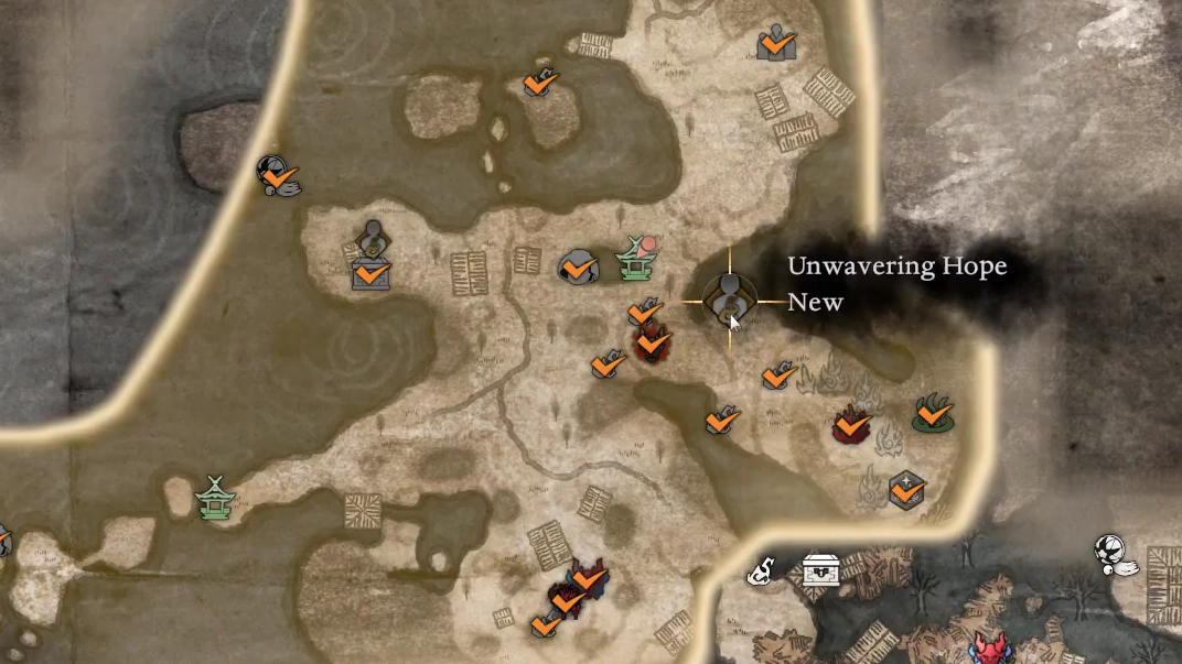 Completing Unwavering Hope also counts toward the Answering to the People trophy, which tracks every Myth finished across all regions. Since no Myths in Nioh 3 can be permanently missed, you don't need to worry about tackling them in a specific order — but clearing the Lesser Crucible during this quest opens up additional paths in Sagano that make further exploration easier.