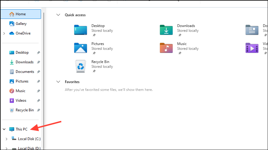 - Open the Windows File Explorer from the taskbar and click on 'This PC' on the left.