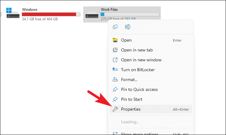 Step 1: Open File Explorer and navigate to This PC. Right-click on the drive you want to compress and select Properties.
