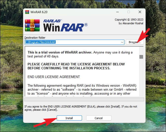 Step 4: In the installer window, you can change the installation directory by clicking Browse. When ready, click Install to proceed.