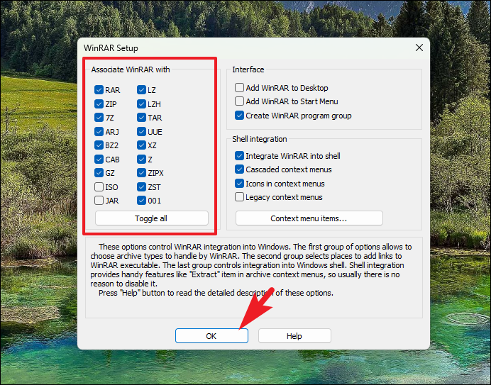 Step 5: Once installed, you'll be prompted to select file associations. Choose the compressed file formats you want WinRAR to handle and click OK.