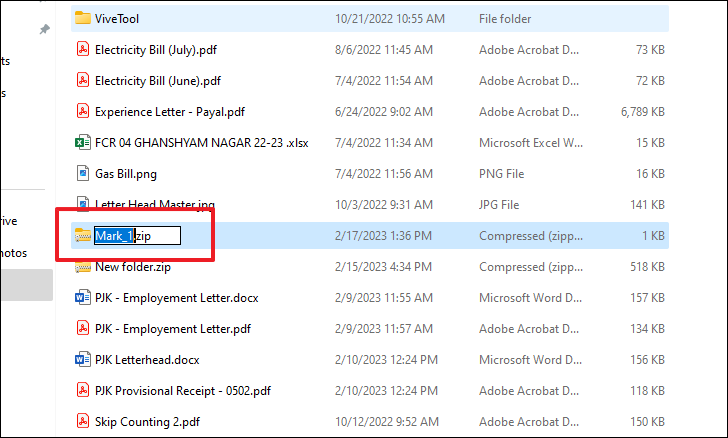 Step 4: A new ZIP file will be created in the same location. You can rename the ZIP file by typing a new name and pressing Enter.