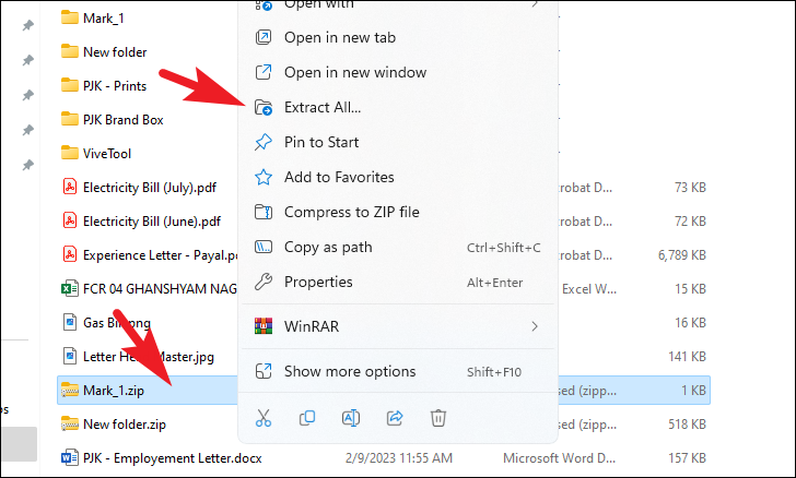 Step 5: To view the contents of the ZIP file, double-click it to open. If you need to extract the files later, right-click on the ZIP file and choose Extract All from the menu.