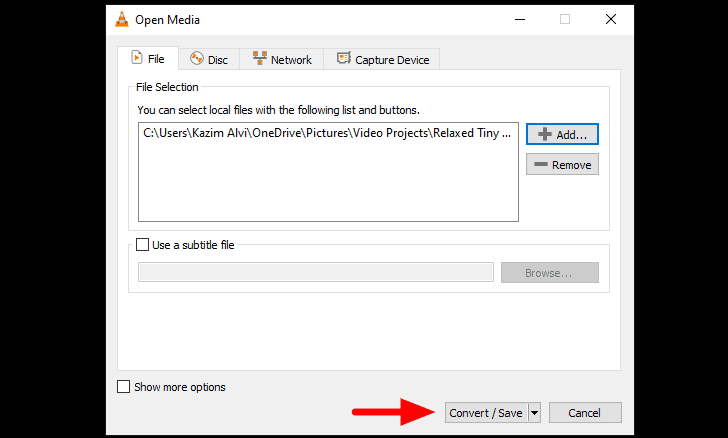 After the video has been added, click on the ‘Convert/Save’ option at the bottom.