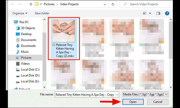 Next, browse and select the video, and then click on ‘Open’ at the bottom.