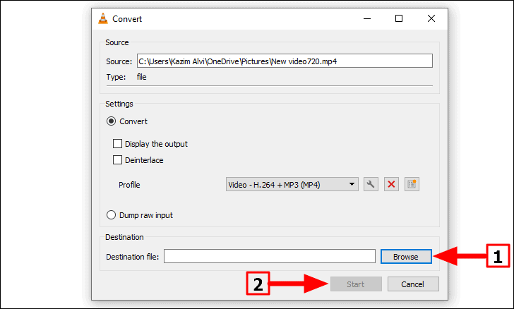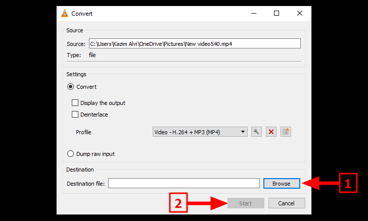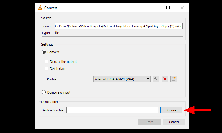 Next, click on browse to select the destination folder, choose a file name and then click on ‘Start’ to start the conversion process as discussed in the previous section.