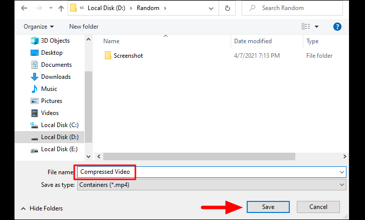 Now, locate the destination of the new video, enter a new name for it in the provided section, and then click on ‘Save’ at the bottom.