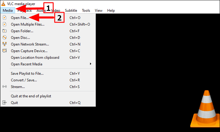 To crop a video with VLC, launch the player, click on ‘Media’ from the top-left corner and then select ‘Open File’ from the menu.