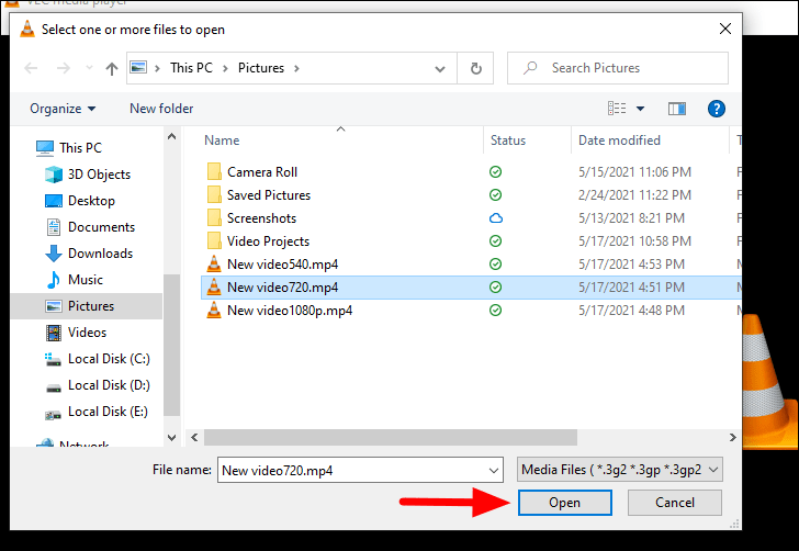 Locate and select the video that you want to trim and click on ‘Open’ at the bottom.