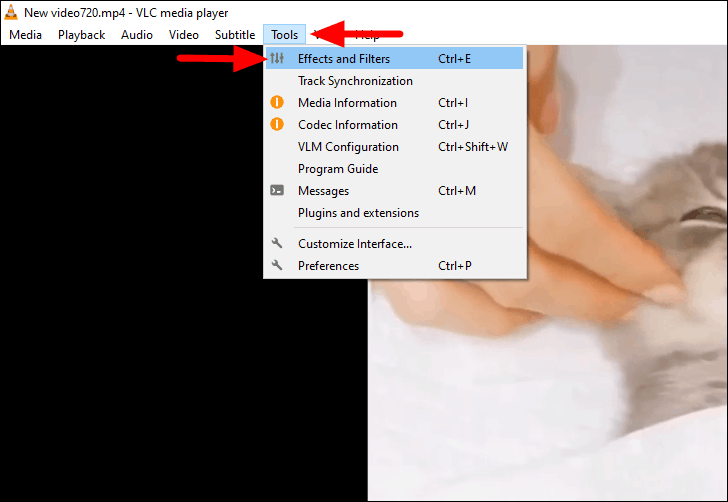 After you have identified the portion to keep in the video, click on the ‘Tools’ menu and select ‘Effect and Filters’ from the drop-down menu.