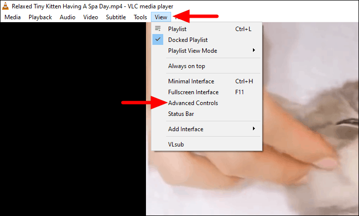 After the video is loaded in VLC media player, click on ‘View’ in the menu bar and select ‘Advanced Controls from the menu.