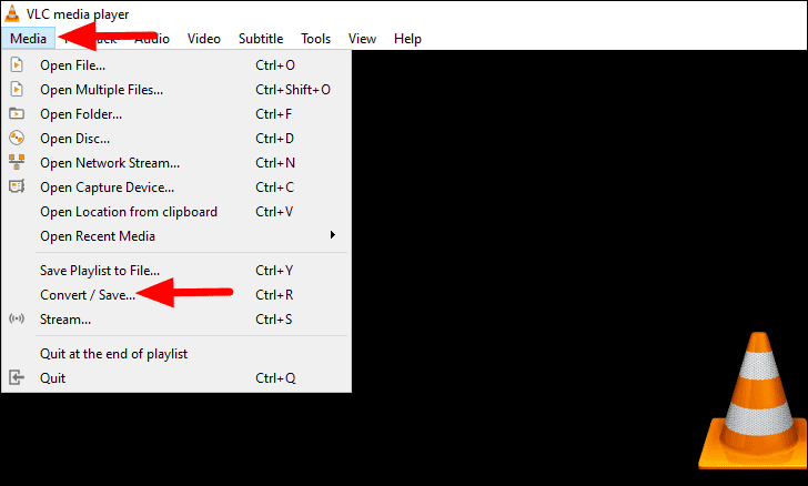 In the VLC media player, click on ‘Media’ from the menu bar, and then select ‘Convert/Save’ from the drop-down menu.