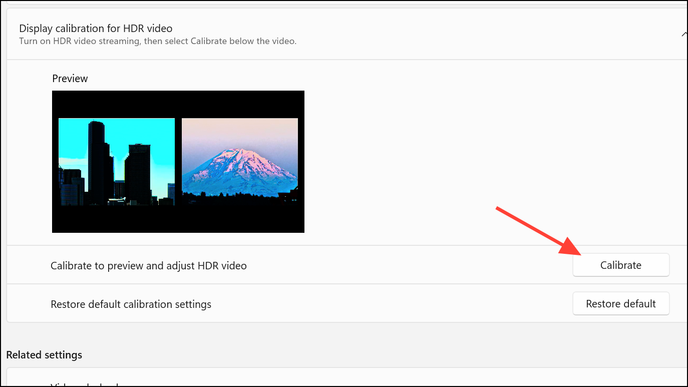 Step 5: You can also perform HDR Display Calibration by clicking the Calibrate button to fine-tune brightness and contrast settings using the built-in calibration tool.
