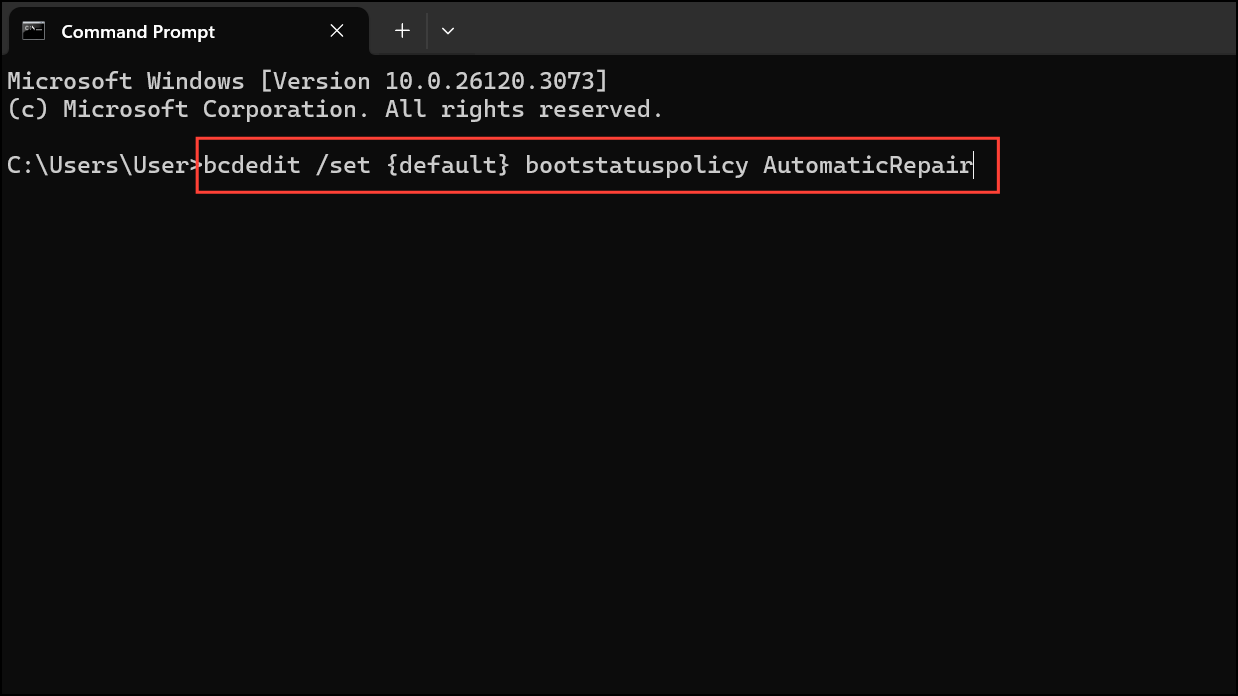 Press Enter. This setting ensures Windows 11 automatically attempts repairs whenever boot issues arise.