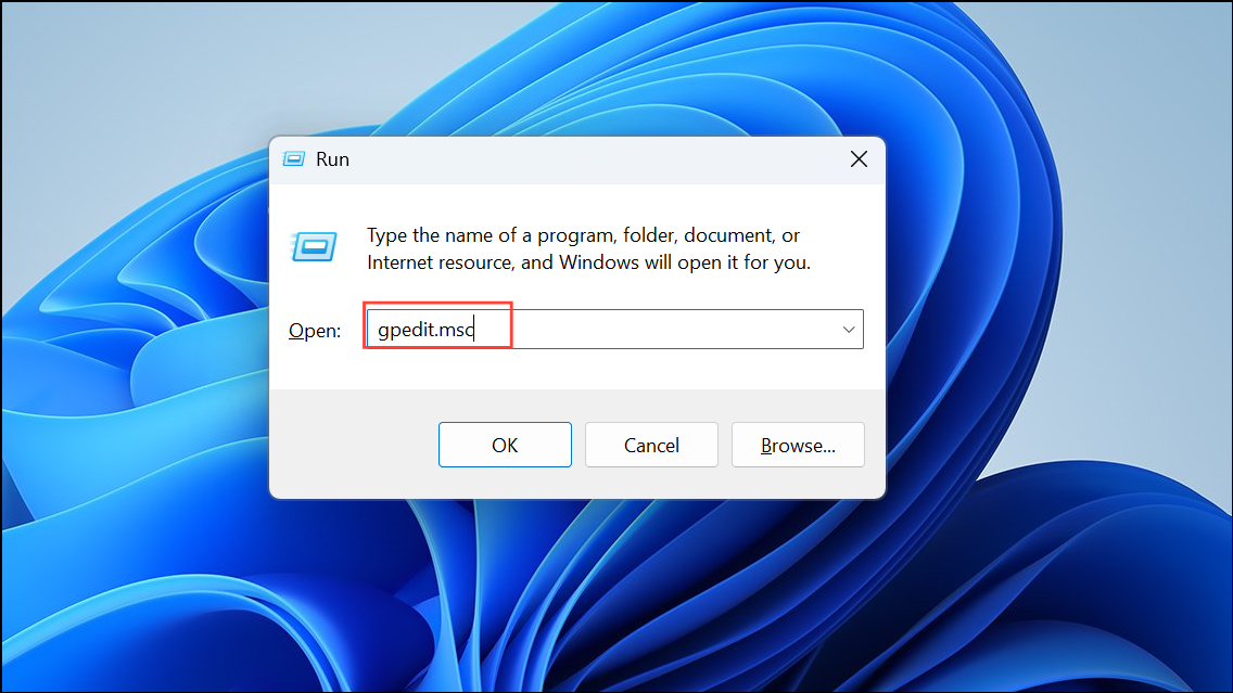 Step 1: Press Win + R to open the Run dialog, type gpedit.msc, and press Enter to launch the Local Group Policy Editor.