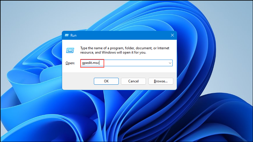 Win + Rshortcut to open the Run dialog and typegpedit.mscbefore pressing Enter.