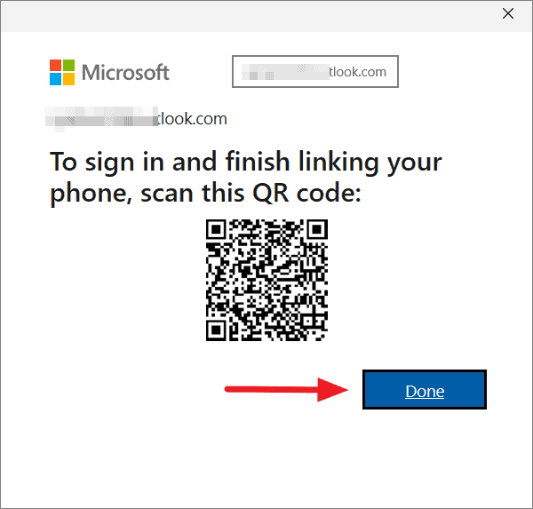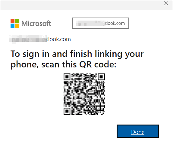 If you're unable to scan the QR code, tap the back button and select Sign in with Microsoft. Sign in using the same Microsoft account as on your PC.