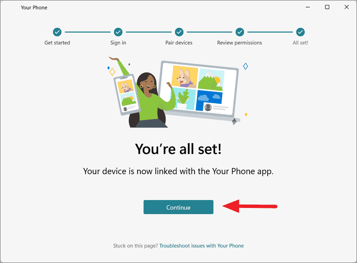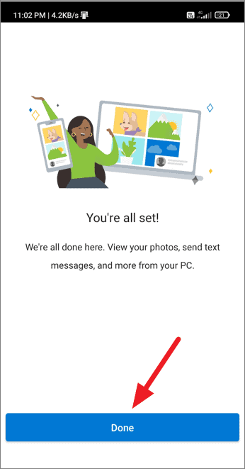 - Finally, tap Done. A message confirming that your phone and PC are linked will appear.