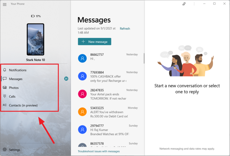 - Back on your PC, click Refresh in the 'Your Phone' app to view your phone's notifications.
