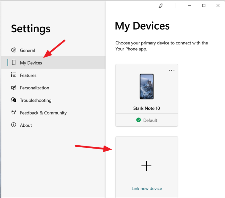 - Under My Devices, click Link new device and follow the on-screen instructions to add another phone.
