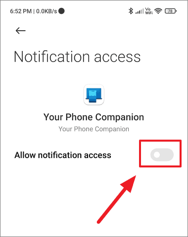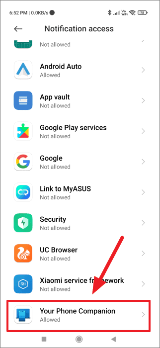 - Find and select Your Phone Companion, then toggle on Allow notification access.