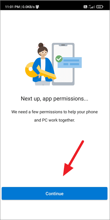 - Tap Continue to scan the QR code displayed on your PC. Use your phone's camera to scan the code.