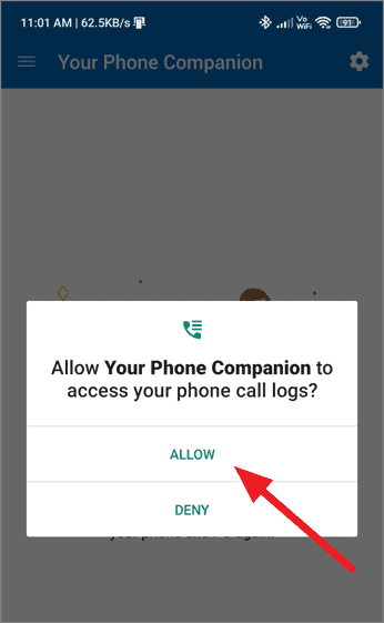 - On your phone, tap the notification and select Allow to grant access to your call logs.