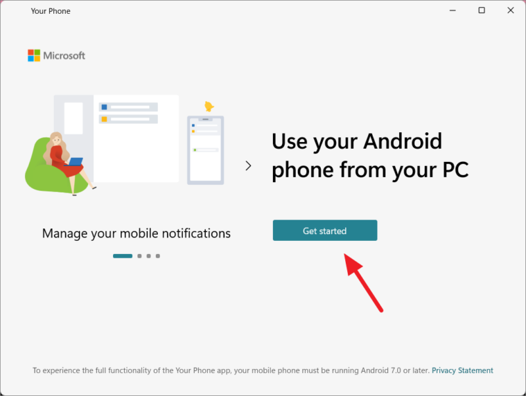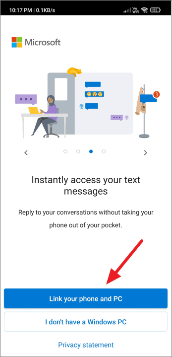 - Once installed, open the app and tap Link your phone and PC to start the pairing process.