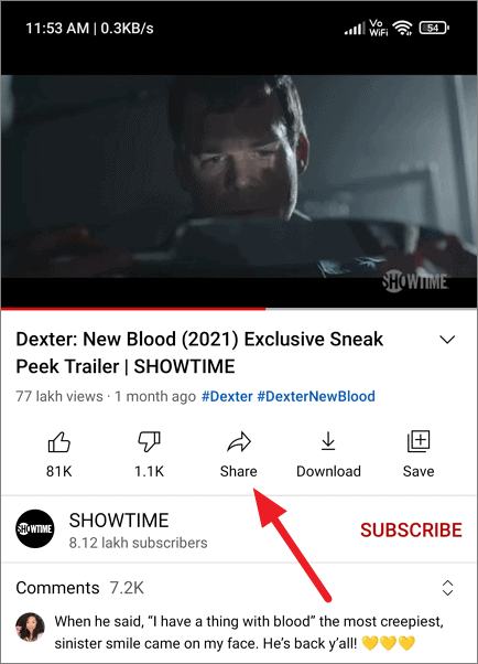 - On your phone, open the content you want to share (e.g., a YouTube video) and tap Share.