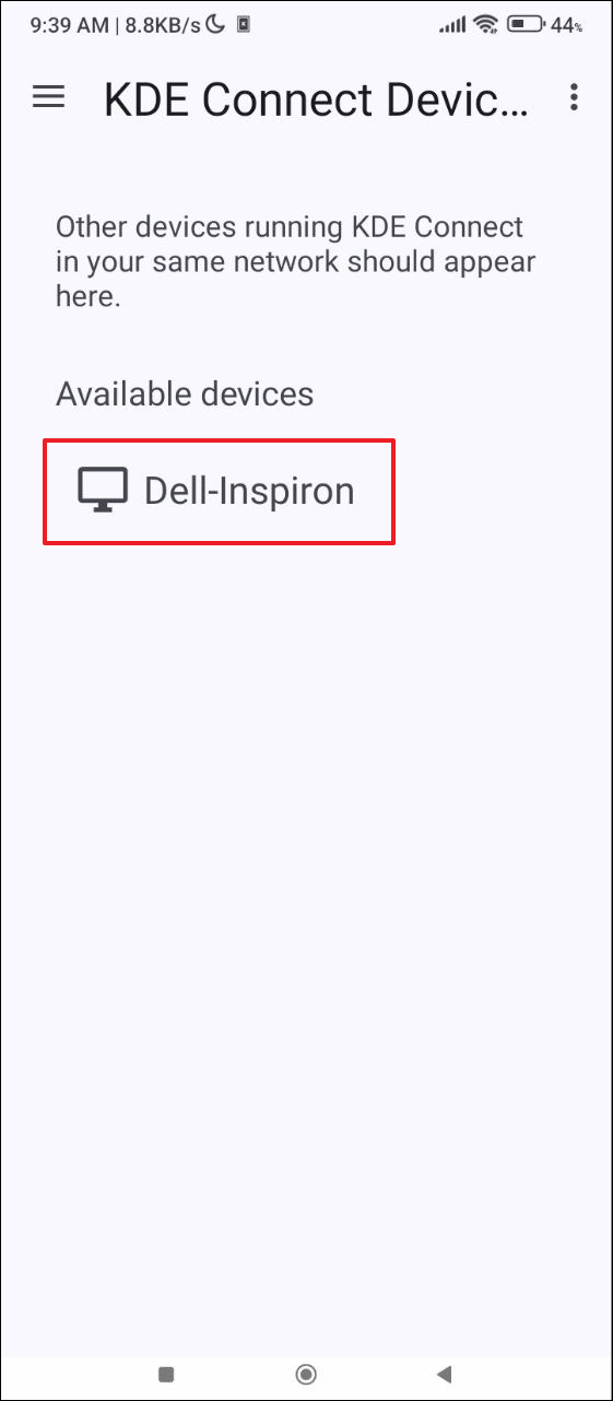 - In the KDE Connect app, tap on your computer's name under Available devices.