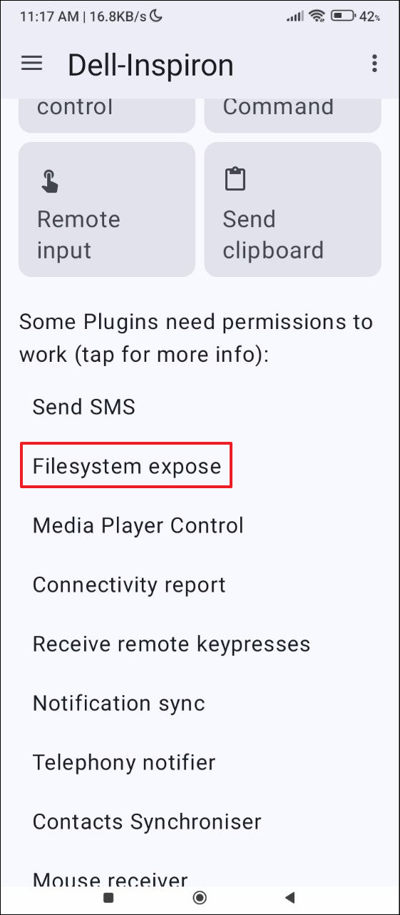 - On your Android, tap on Filesystem Expose plugin to adjust file-sharing settings.