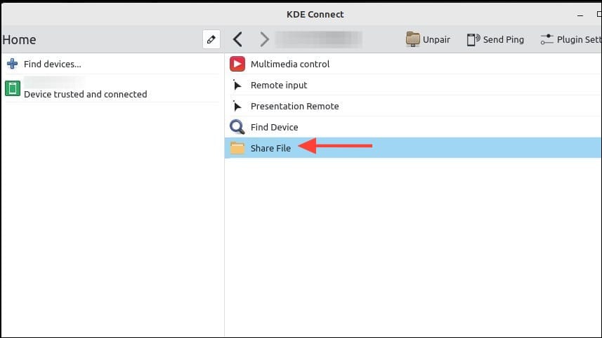 - Send and receive files by clicking on the Share File option in KDEConnect and selecting the files in your file manager.