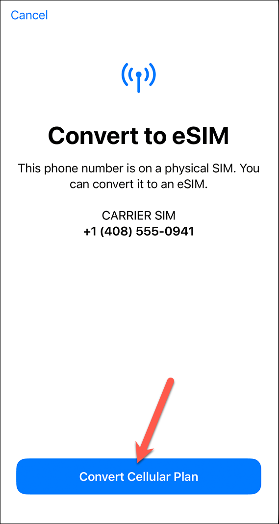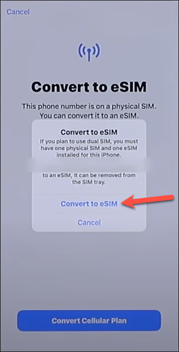 Then, tap ‘Convert Cellular Plan’ from the Convert to eSIM screen that pops up.