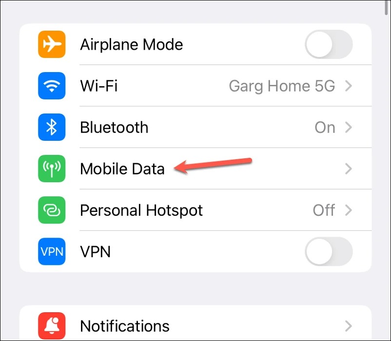 Open the Settings app and tap the option for ‘Cellular’ or ‘Mobile Data’. Depending on the region you’re in, the option you see will vary.