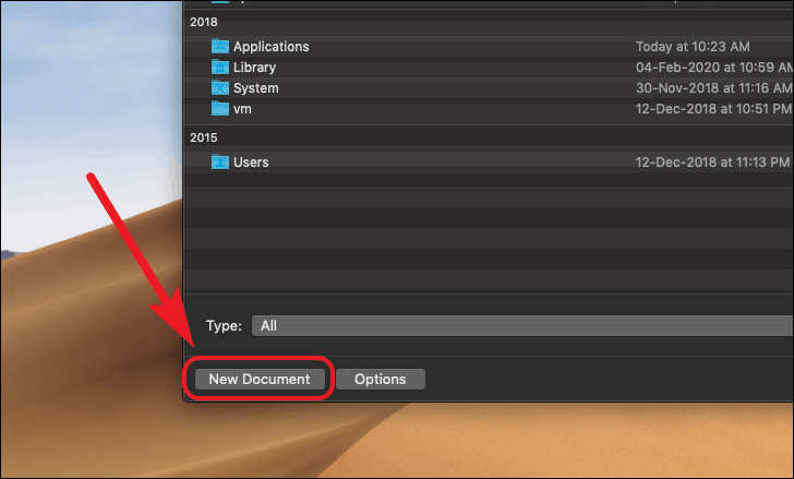 Next, click on the ‘New Document’ button from the bottom left corner of the window.